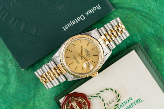 Rolex Datejust 36 Champagne Index Dial 16233 Two Tone Yellow Gold 1991 Model