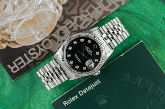 Rolex Datejust 36 Black Diamond Dial 16234G Stainless Steel 1998 Model
