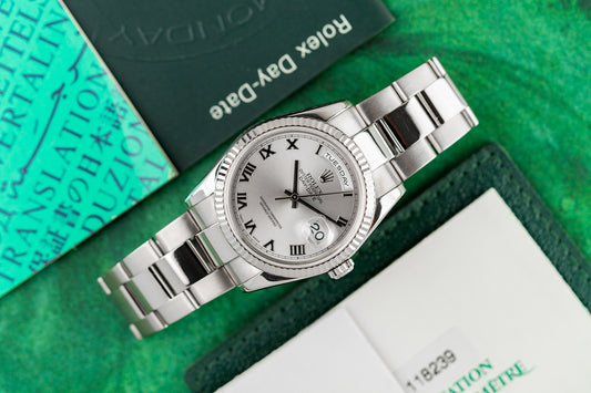 Rolex Day-Date 36 White Gold 118239 Silver Roman Dial 2004 Model
