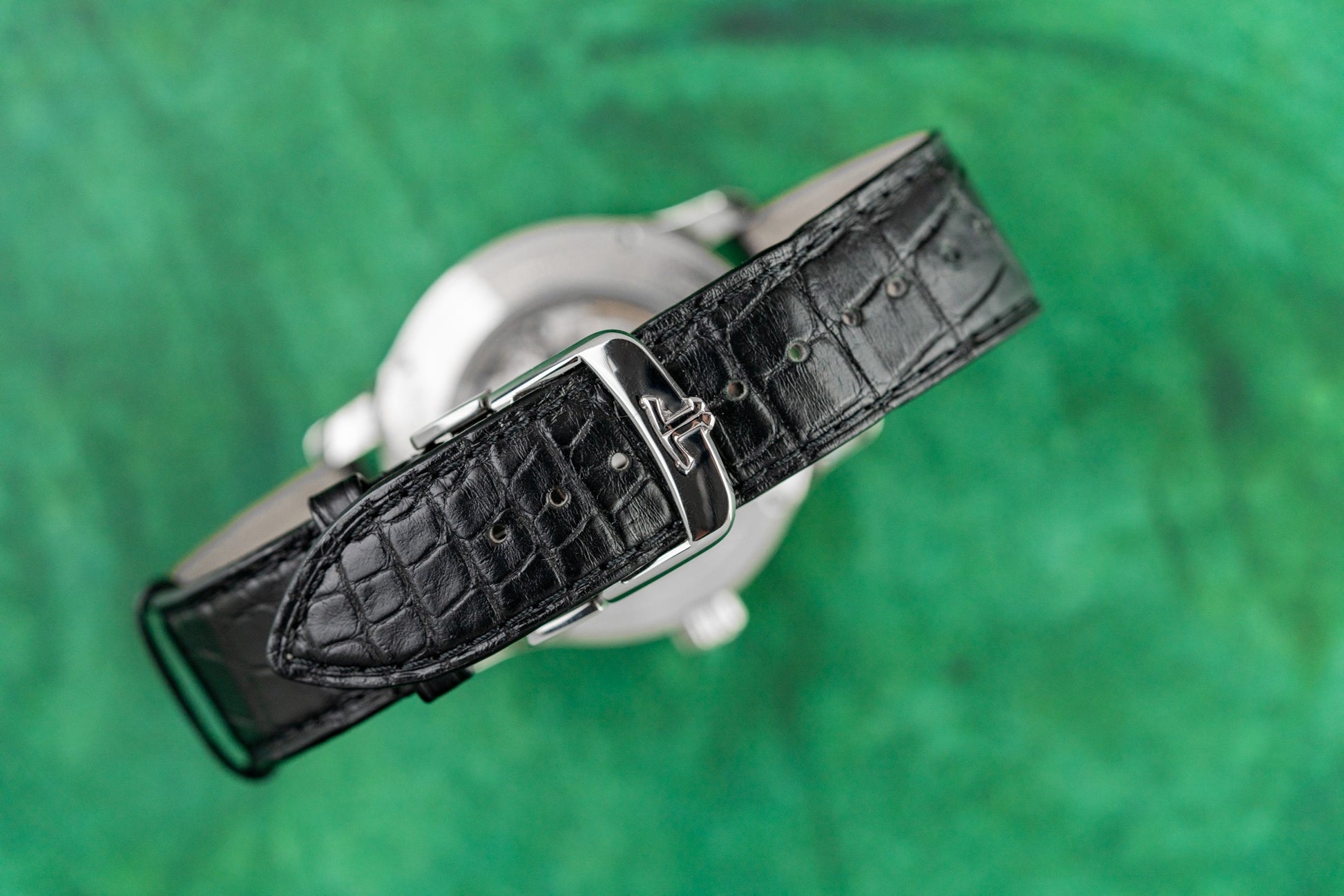 The watch presents in great condition with light wear. The watch has been fully serviced by JLC in 2022. The leather strap is in great condition with light wear.