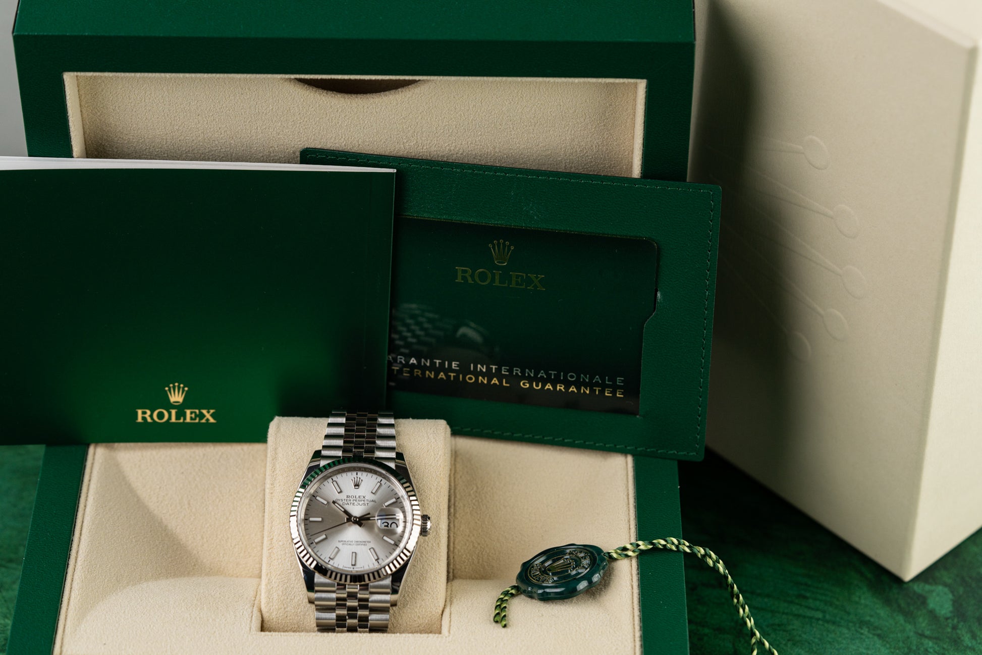 The watch comes complete as a full set with box, booklets and a warranty card, The warranty card is dated 2024,